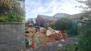上部は人力で解体し、その後重機を使い解体・撤去しました。